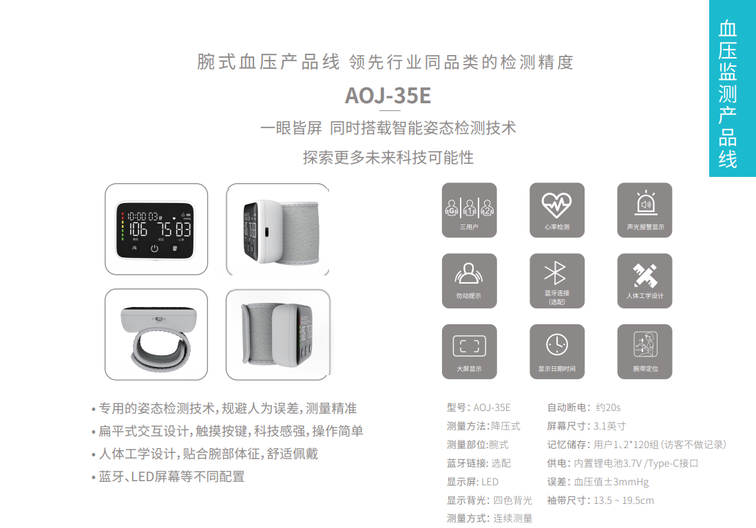 AOJ made its debut of the latest BP monitors’ upgrades–35E and 33A, which adopted integrated screens and are equipped with self-developed DynBPM System™ technology to comprehensively improve the detection accuracy.