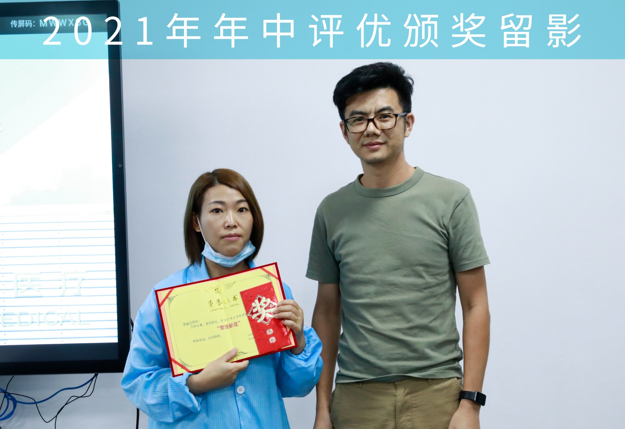 He Lie from R & D Department: He actively cooperates with the test and verification work of blood pressure atomization and body temperature blood oxygen two product lines. He can  complete the test on time with quality and quantity guaranteed, and make an important guarantee for the production introduction and mass production of subsequent products. He led the team to be actively responsible and to work overtime to complete the test tasks. Meanwhile, He carried out test cases, test plans and test reports in an orderly manner, and made continuous and rapid improvement in accordance with the requirements of regulations.